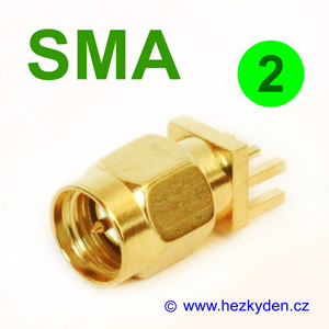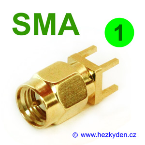 1. SMA zásuvka do DPS, čtvercová rozteč vývodů, středový pin