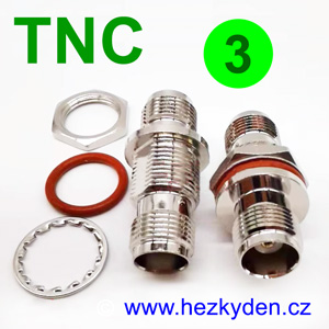 - TNC konektor – oboustranná zásuvka s upevněním do panelu středovou maticí