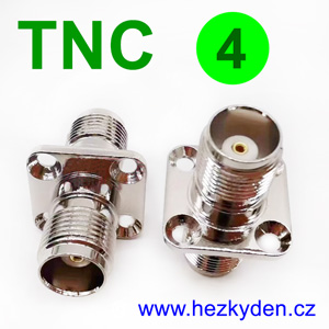 - TNC konektor – oboustranná zásuvka s upevněním do panelu přírubou pro čtyři šrouby M2,5