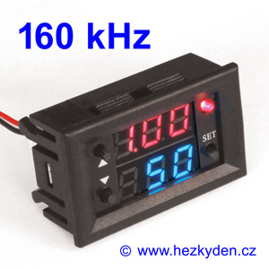 Malý kompaktní generátor obdélníkového signálu od 1 Hz do 160 kHz s nastavením střídy PWM. Dvouřádkový LED displej, jednoduché ovládání.