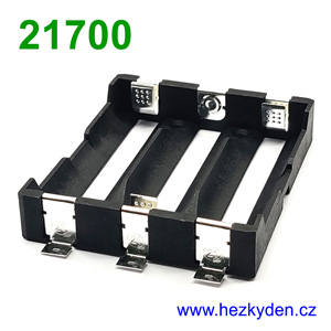 Držák pro baterie 21700 je určen pro 1, 2 nebo 3 články – řazeno vedle sebe. Vývody uzpůsobeny montáži SMD na desku plošných spojů. Na dně každého držáku se nacházejí dva otvory o průměru 3,1–3,2 mm pro upevňovací šroubek M3.