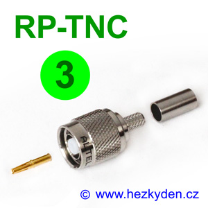 Krimpovací reverzní konektor TNC (RP-TNC) na kabel pro různé průměry kabelu.