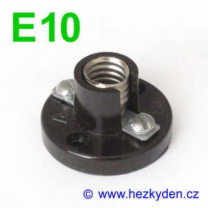 Bakelitová objímka pro žárovku se závitem E10 z produkce někdejšího podniku ZSE.